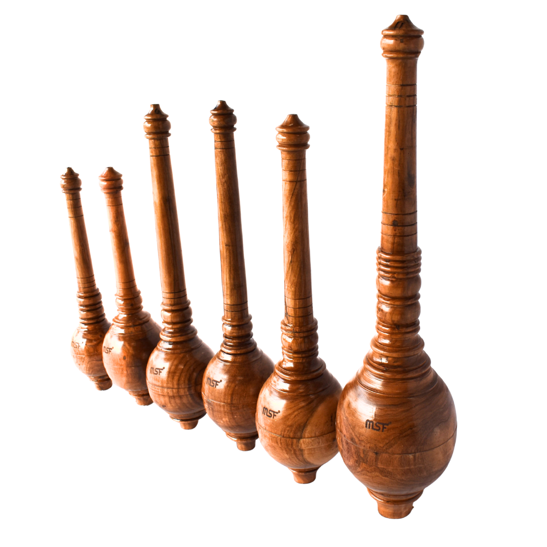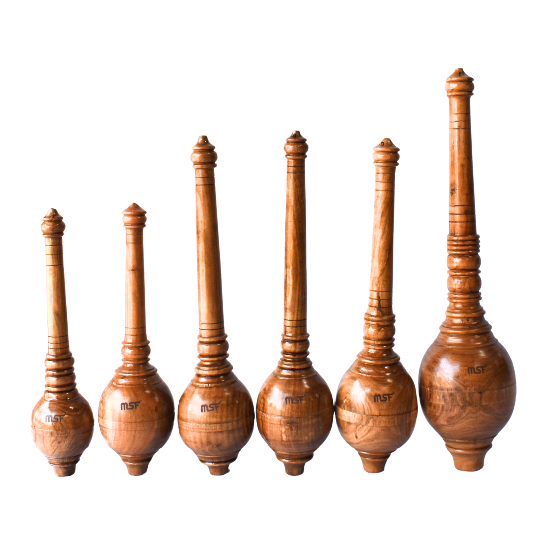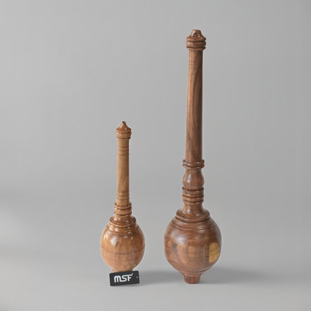 The Hanuman Gada Wooden (Mugdar) is a traditional Indian fitness tool inspired by the mace (gada) of Lord Hanuman, symbolizing strength and power. Crafted from high-quality natural wood such as Sheesham or teak, it features a long handle with a weighted end, available in various weights from 1 kg up to 25 kg and heights around 3 feet. Polished for a smooth finish, it offers an ergonomic grip for comfortable handling. This durable and culturally rich equipment blends ancient training wisdom with modern fitness needs.